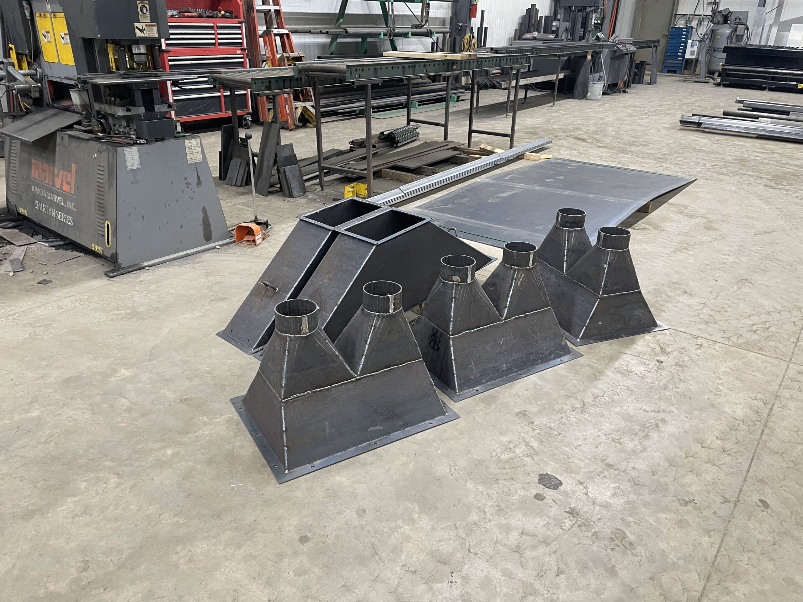 We provide robust infrastructure solutions to optimize your product flow processes across a variety of industries, including grain, feed, food and beverages, aggregate, asphalt, and concrete. Our team designs and fabricates custom metal components using materials like mild steel, abrasion-resistant, or stainless steel to enhance the efficiency and reliability of your operations.